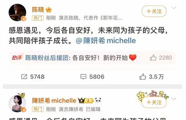 但是,在离婚之后,陈晓的口碑似乎出现反转,网友们扒出两人在离婚前,陈晓就一直冷处理和陈妍希的关系。